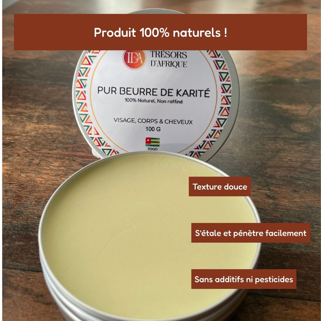 Notre beurre de karité est 100 % naturel, brut et non raffiné.